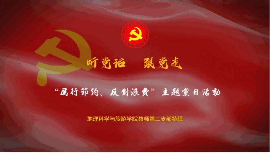 根据学院党总支的要求,2020年9月18—21日期间,地理科学与旅游学院教师第一党支部、第二党支部,本科生第一党支部、第二党支部,研究生第二党支部、第三党支部纷纷开展了“浪费可耻、节约光荣”专题学习及形式多样的主题党日活动。